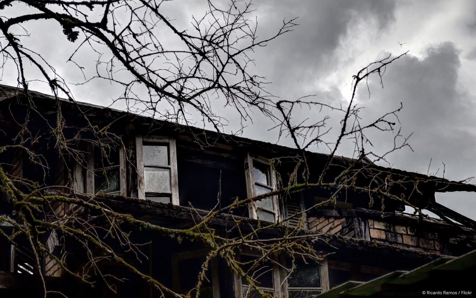 Altes Haus und Baum ohne Blätter