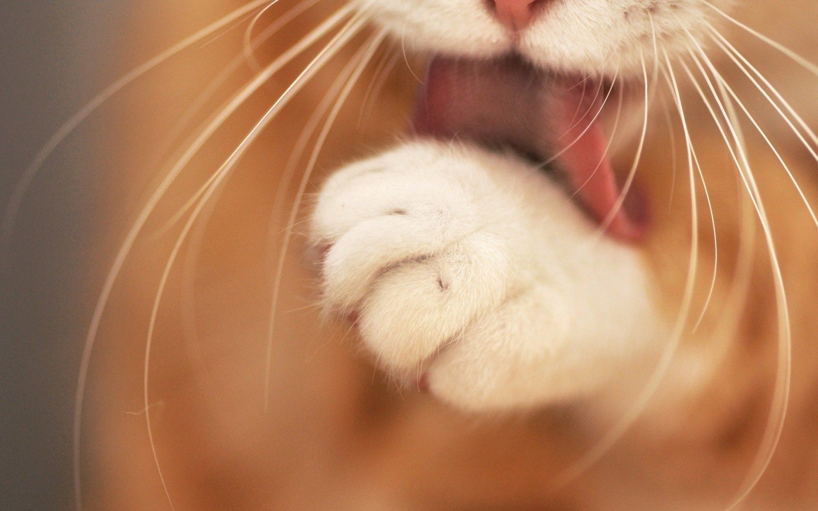 Die Pfoten einer süßen schnurrbärtigen Katze