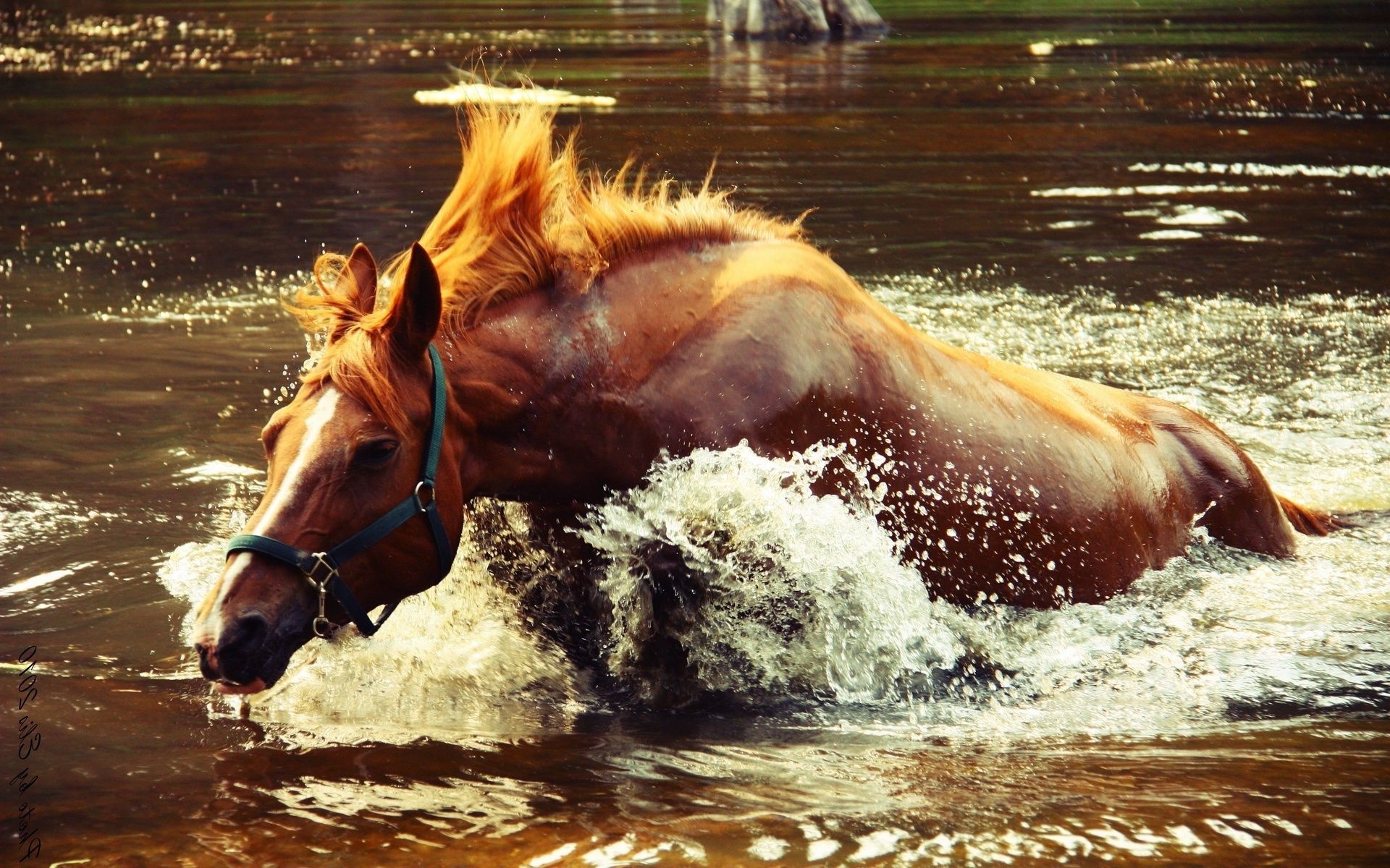 Pferd auf dem Hintergrund eines ruhigen Sees