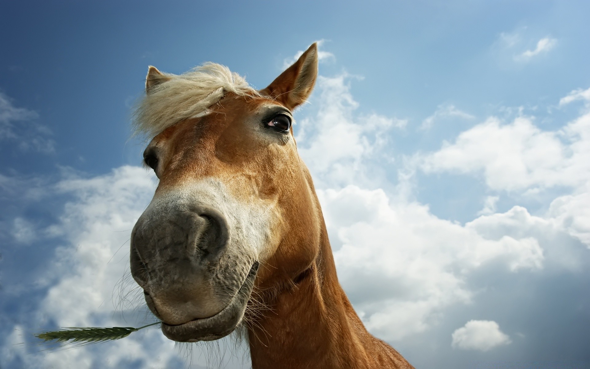 Ein ungewöhnliches pferd in grauer farbe vor dem hintergrund der schönen naturEin ungewöhnliches Pferd in grauer Farbe vor dem Hintergrund der schönen Natur