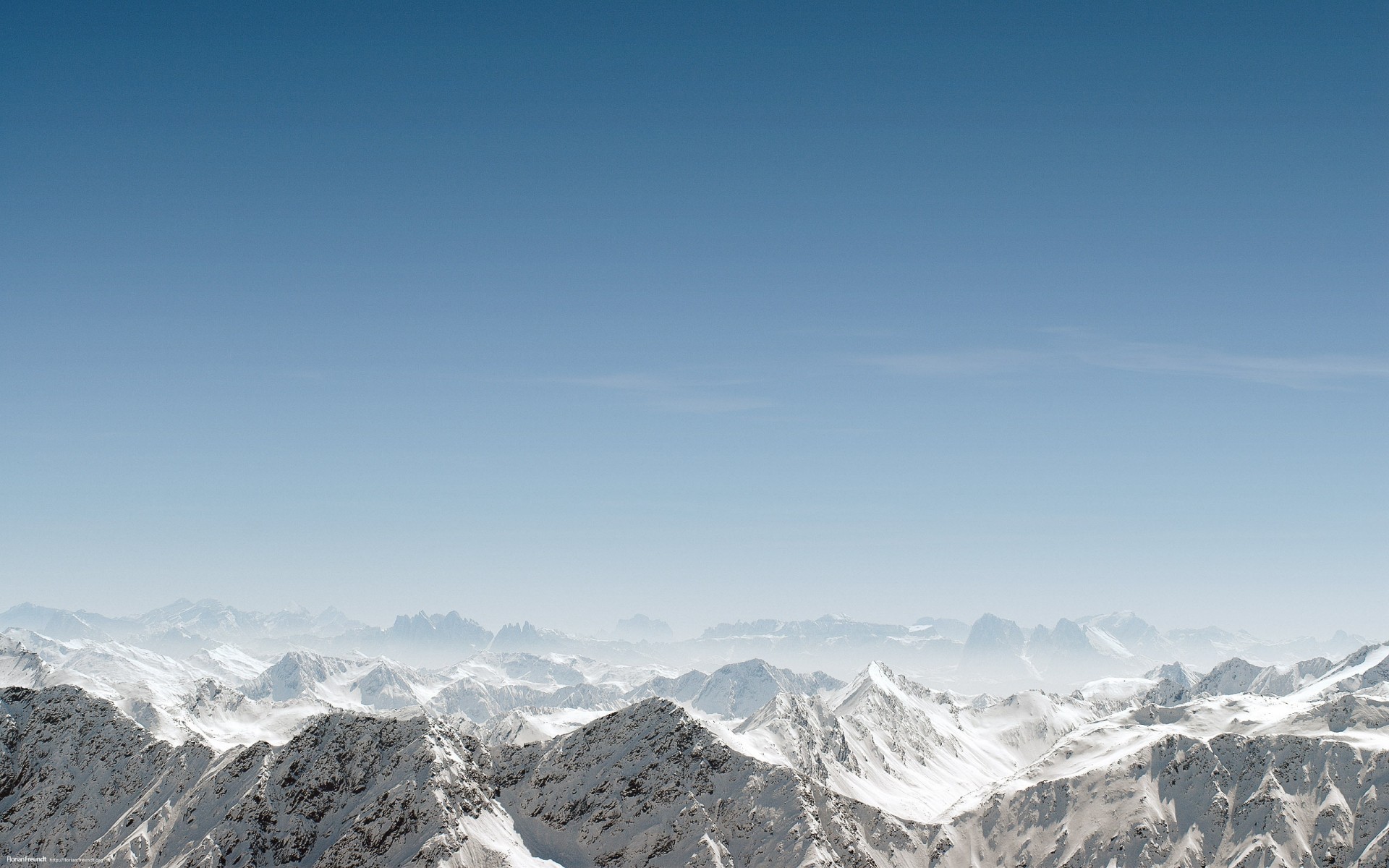 Schneebedeckte berge auf einem sauberen himmelshintergrund