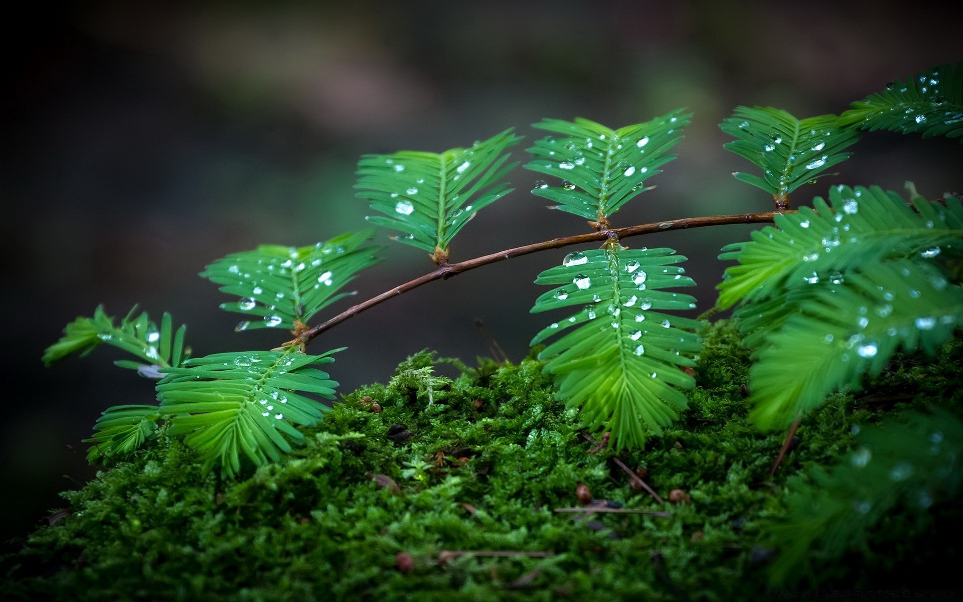Nahaufnahme von Baum und Tautropfen