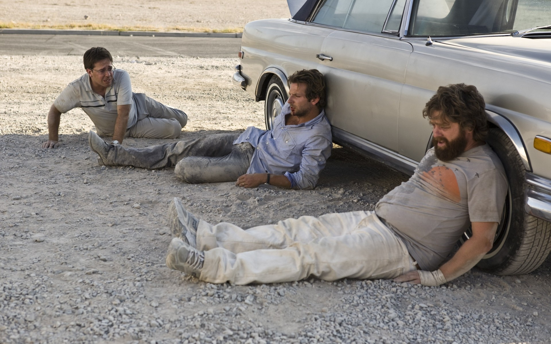 Drei Männer legten sich hinter das Auto
