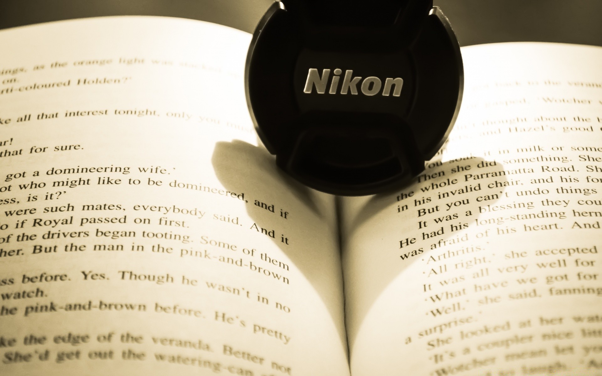Kameraobjektiv-Abdeckung auf geöffnetem Buch