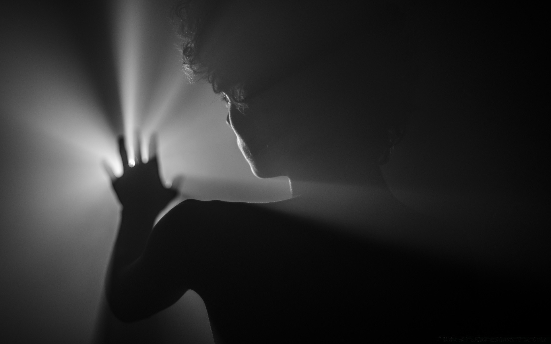 Silhouette eines Mannes, der die Lichtquelle mit der Hand bedeckt