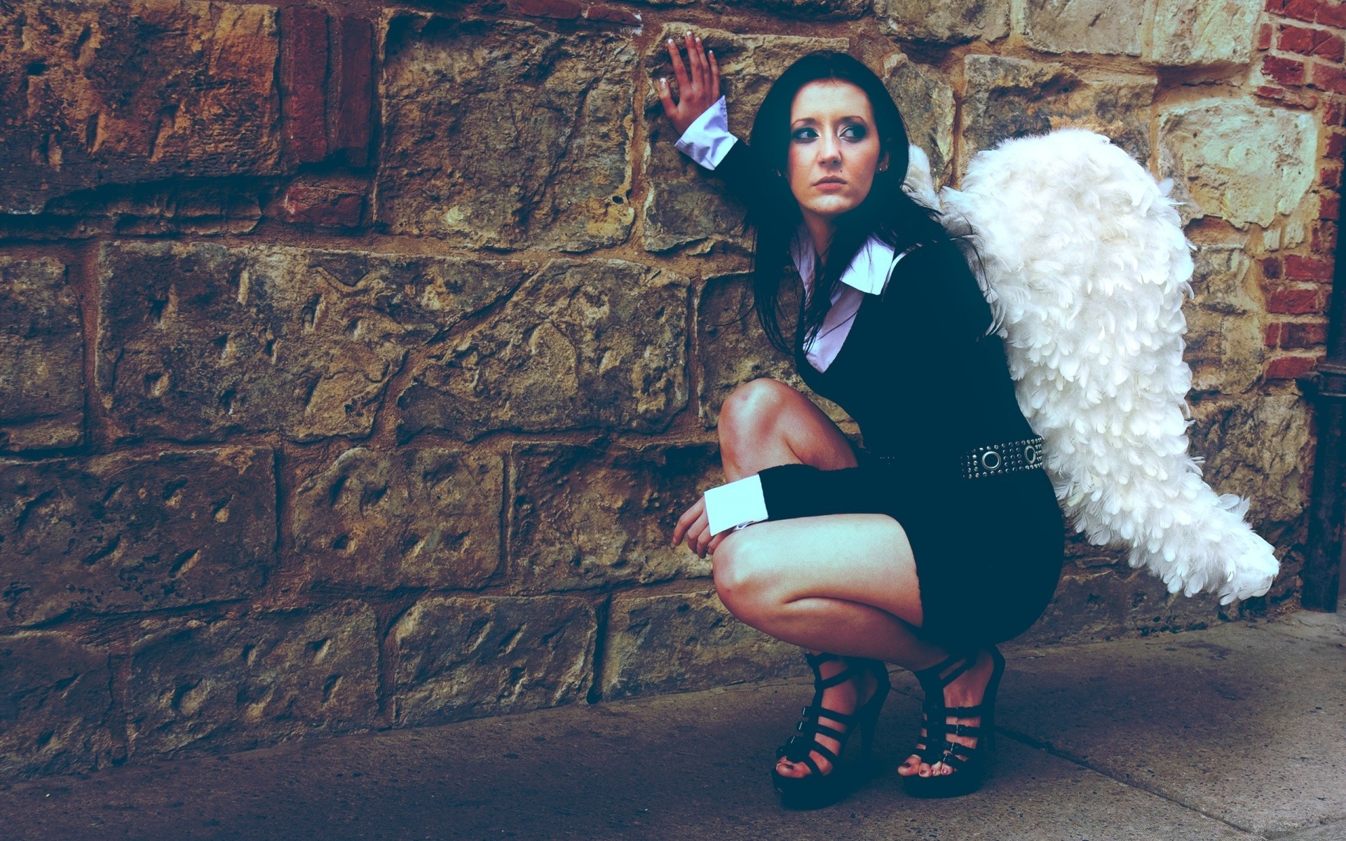 Silhouette eines Mannes auf einem Berg mit einem dunklen Strahl in den Himmel leuchtend
