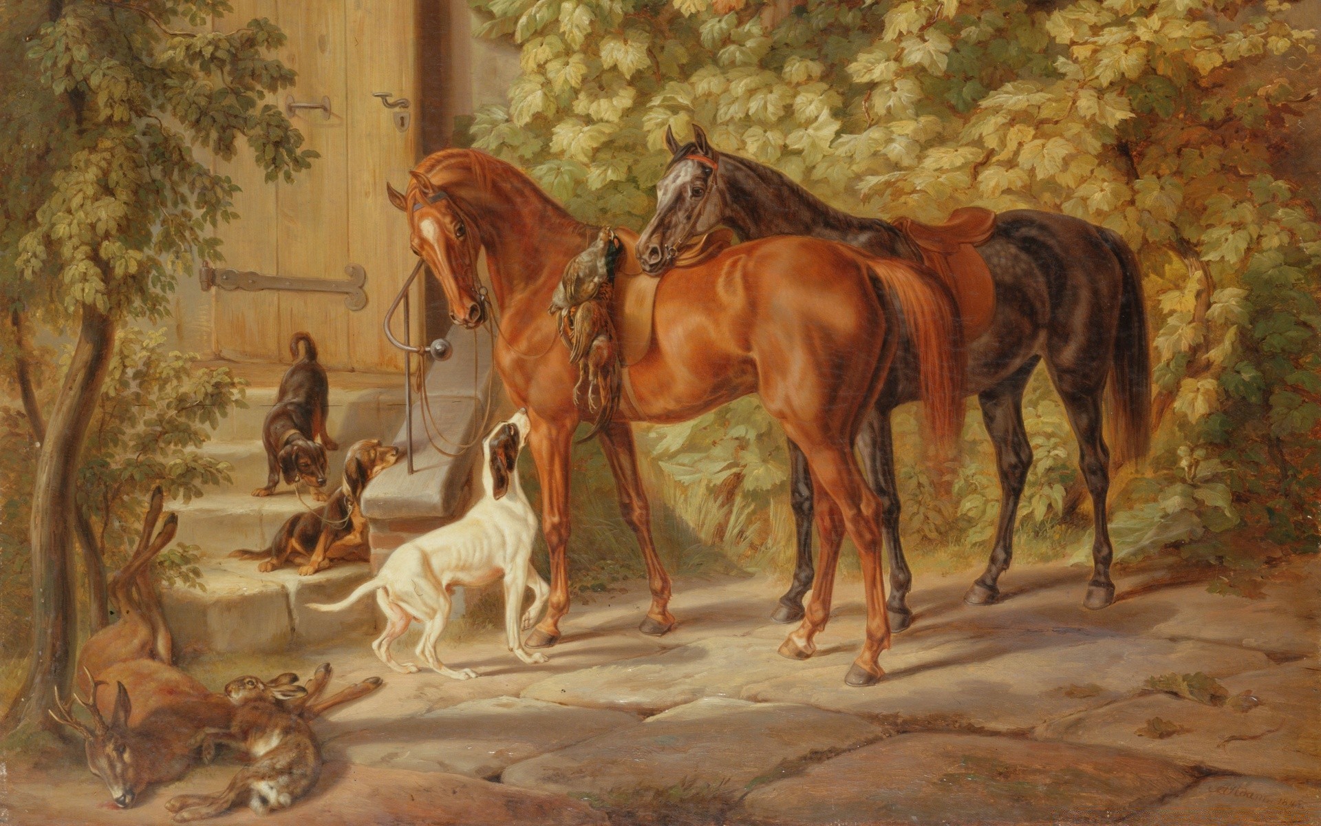 Kavallerie und hund auf baumhintergrund