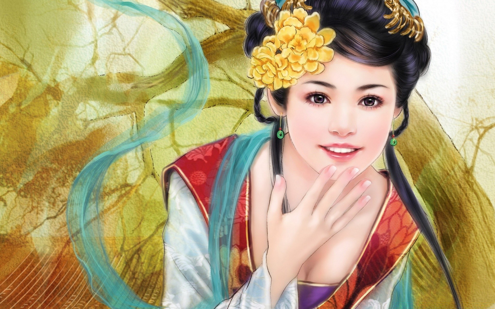 Porträt eines rothaarigen Mädchens mit Schmetterlingen