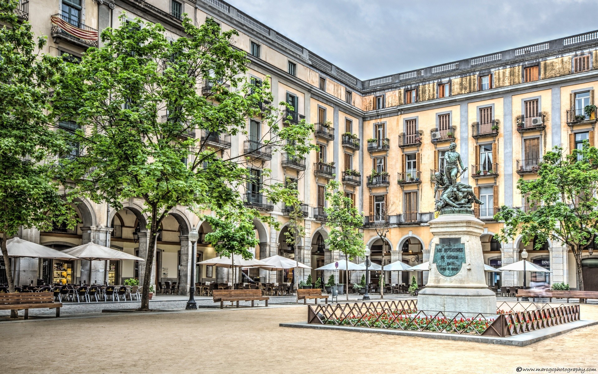 Schöner europäischer Platz mit Denkmal
