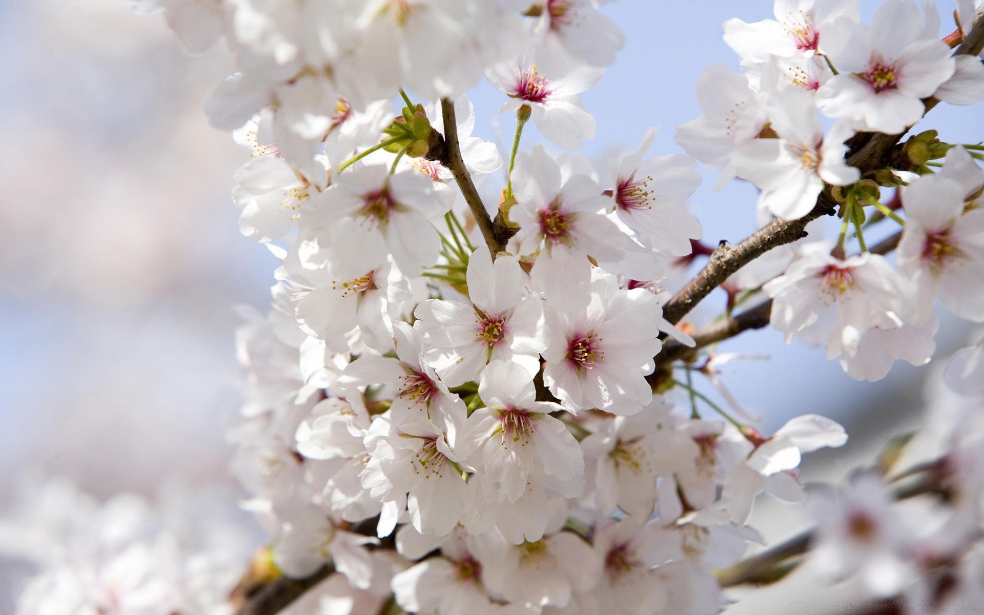 Frühlingsblumen des Kirschbaums auf verschwommenem Hintergrund