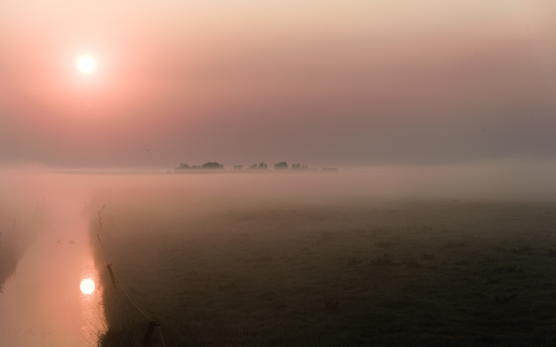 Landschaft der Morgendämmerung über der Wasseroberfläche