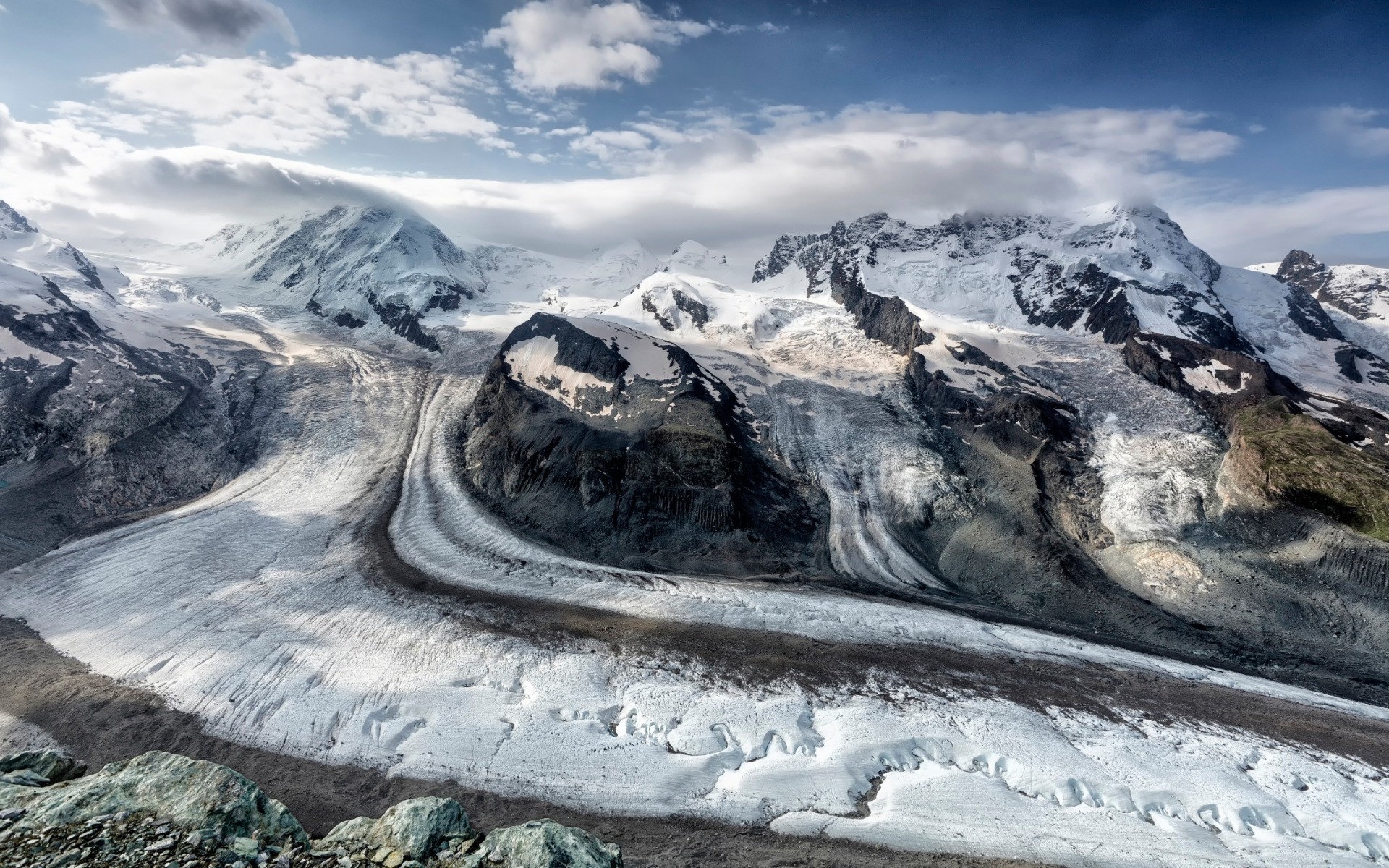 Reisen in den Bergen. Landschaften der schneebedeckten Berge