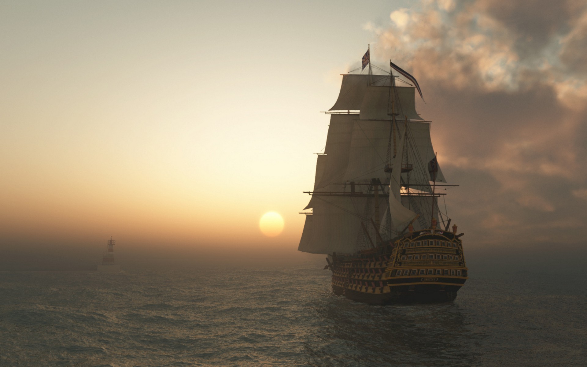 Riesiges Piratenschiff im Meer