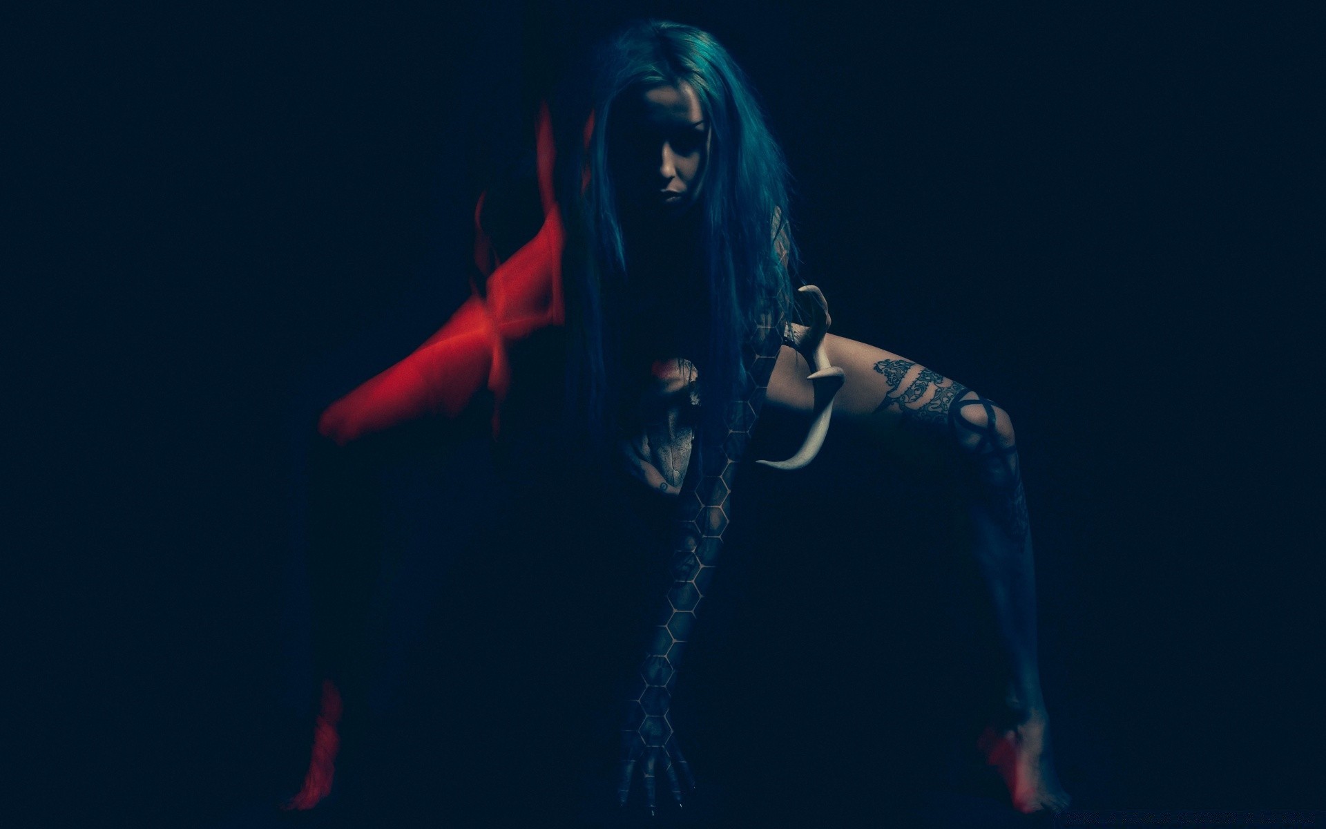 Einschüchternd aussehende Mädchen auf dunklem Hintergrund