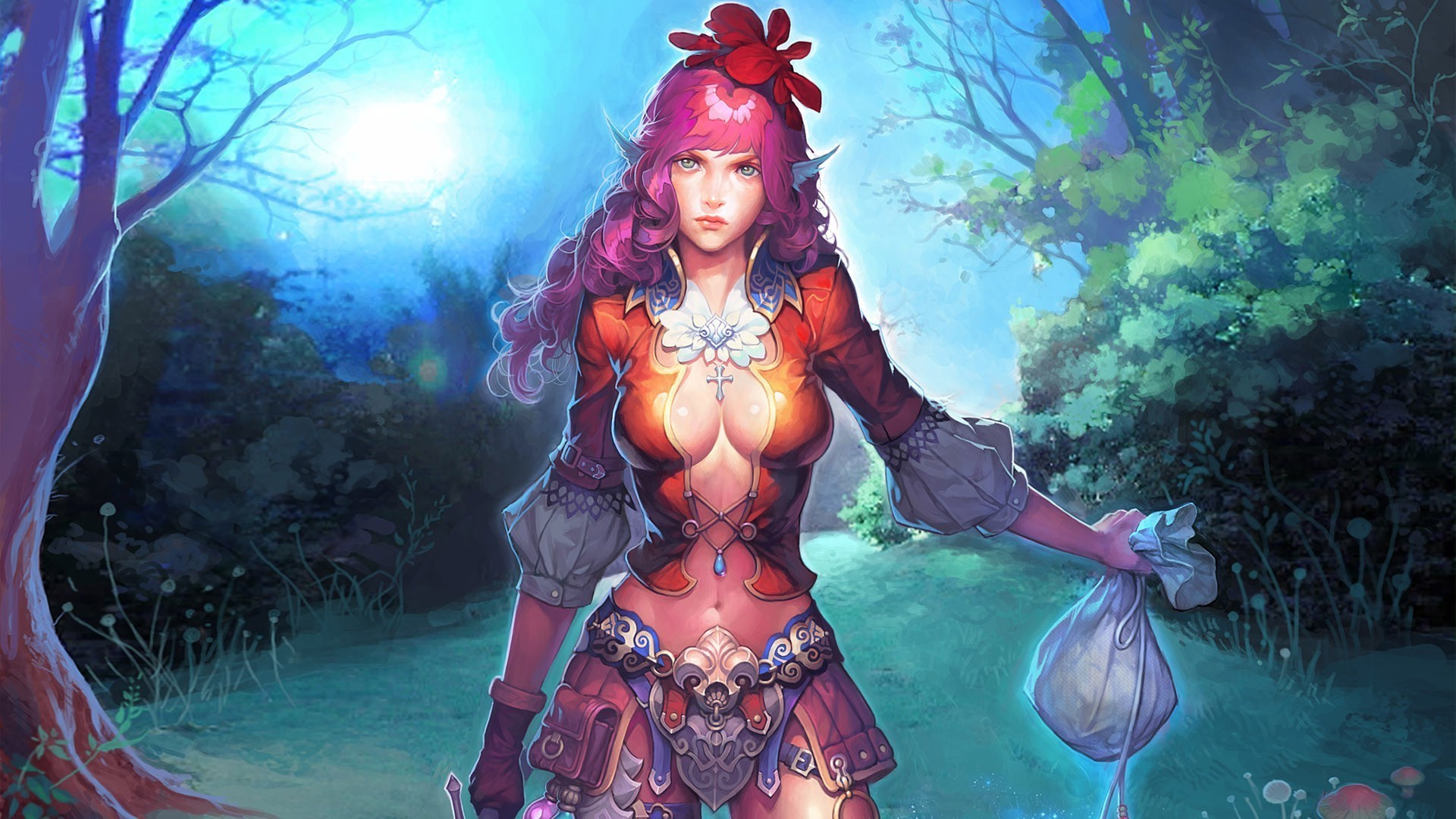Gezeichnete rosafarbene Elfe mit Tasche