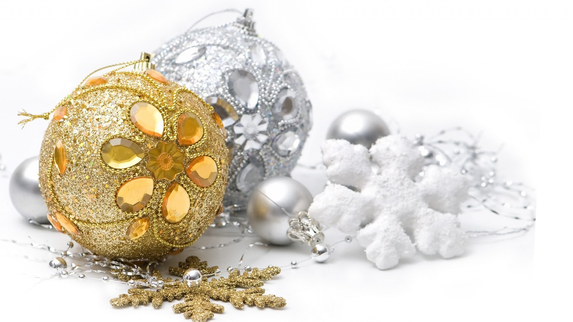 Spiegelnde Weihnachtskugeln auf einer weißen Fichte