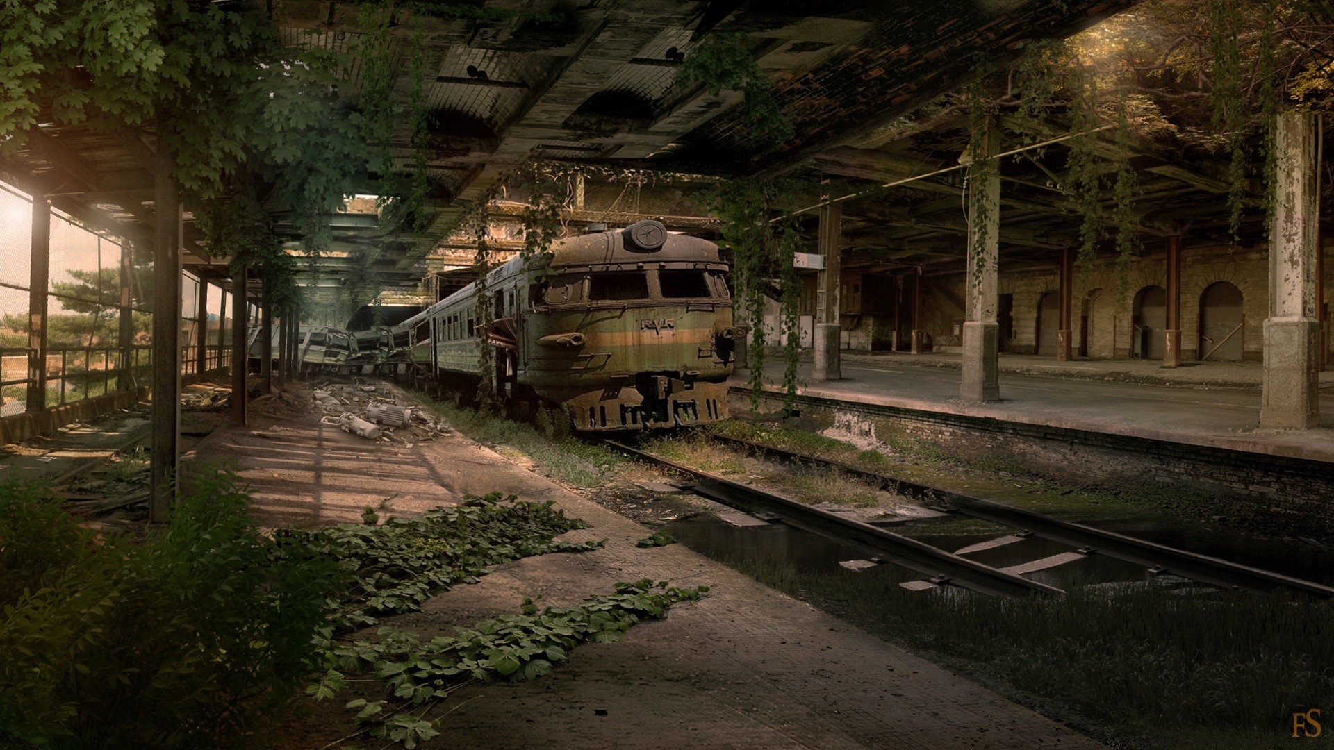 Ein nebeliger Wald, der von Sonnenstrahlen durchdrungen ist