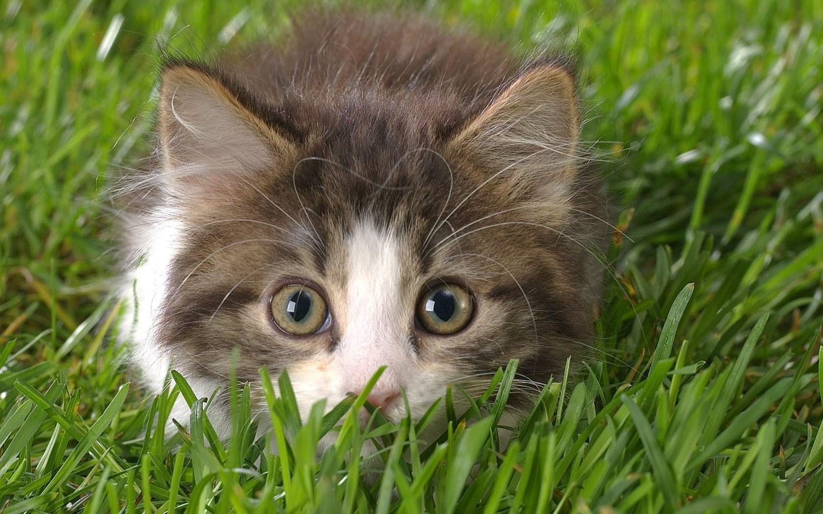 Ein deutscher Schäferhund und ein kleines graues Kätzchen