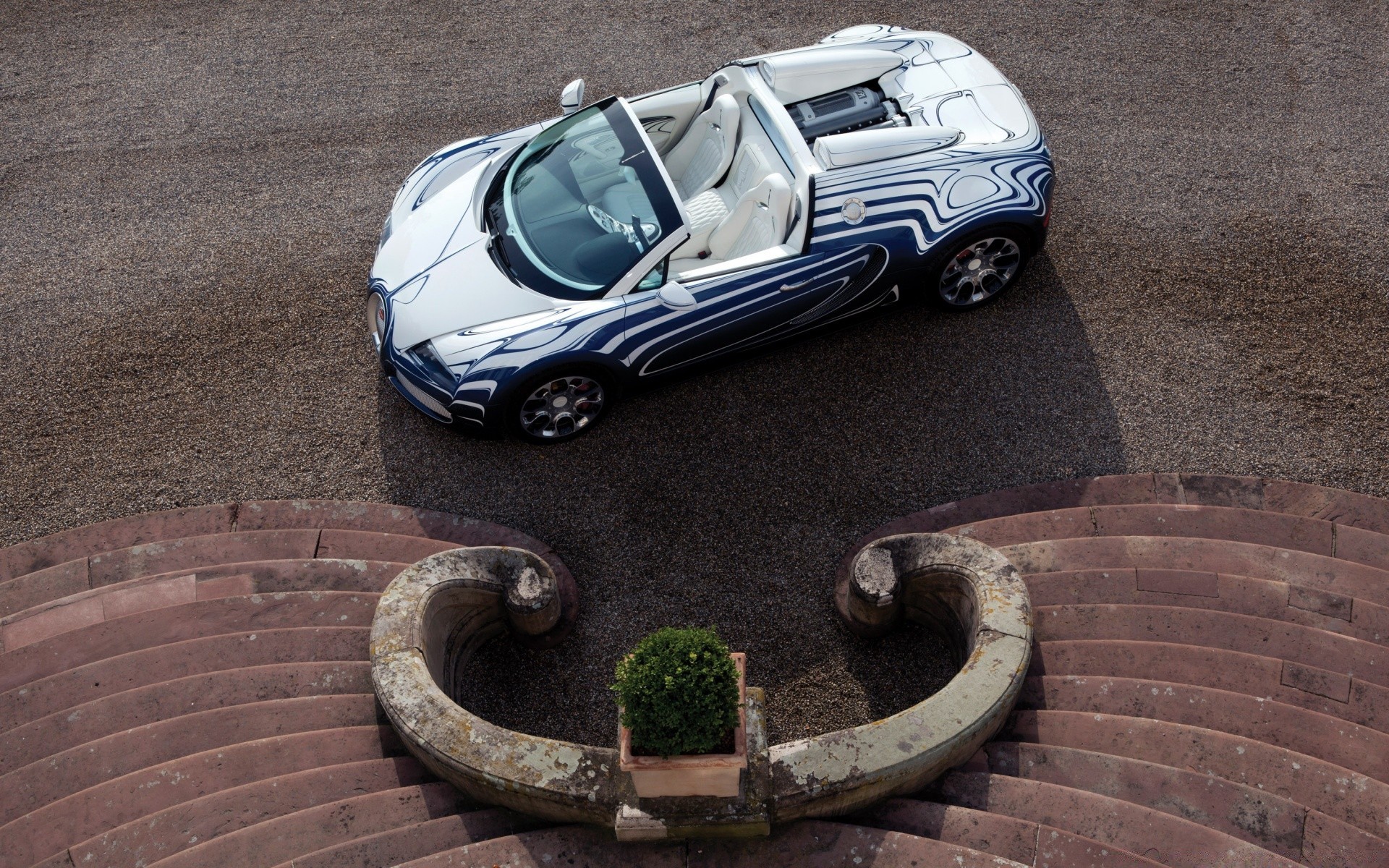 Schickes Auto auf der Straße bei Sonnenuntergang