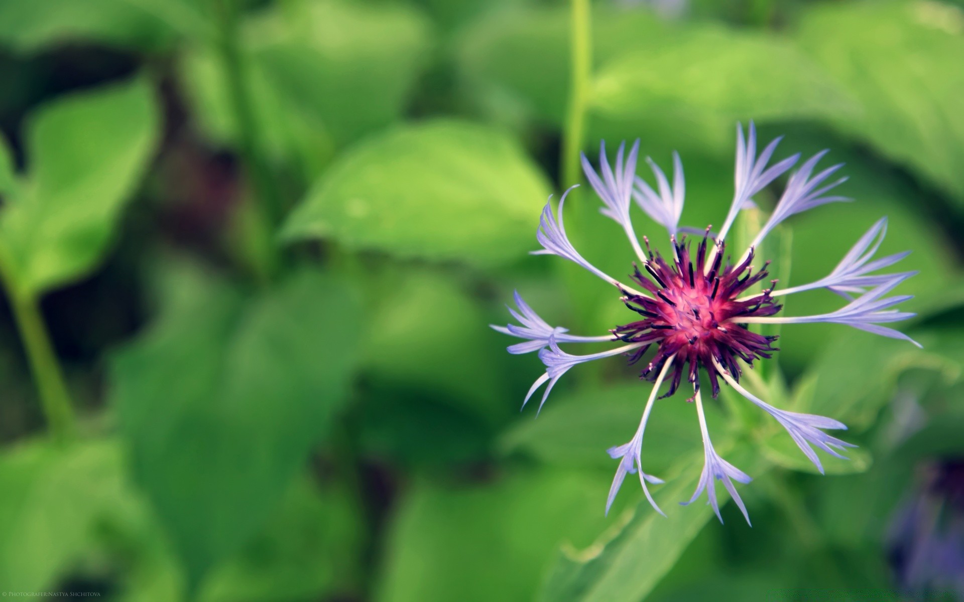 Schöne Blume mit einem lila Kern und lila geschnitzten Blütenblättern