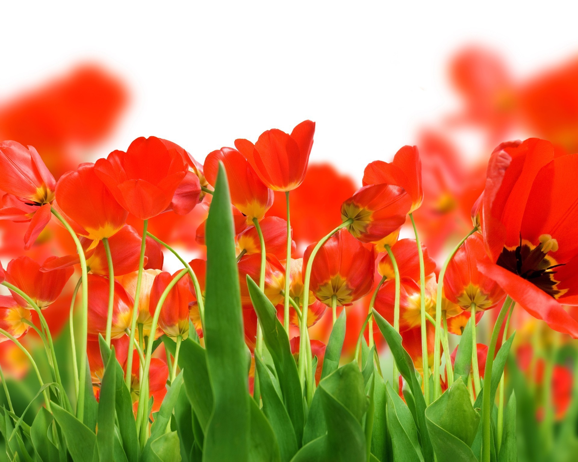 Leuchtend rosa Tulpen wachsen auf dem Feld