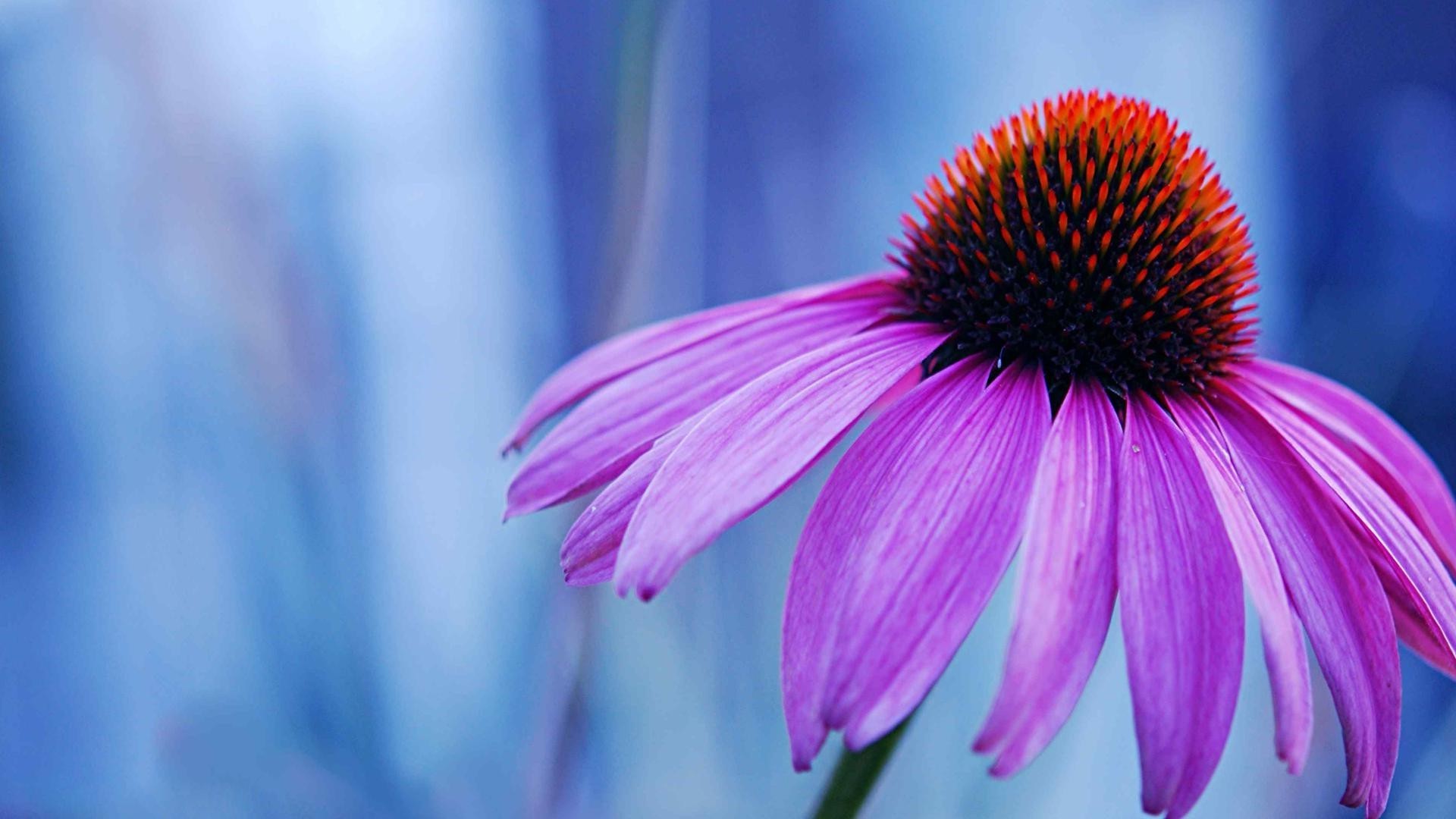 Lila Blume mit gelbem Einstich auf schwarzem Hintergrund
