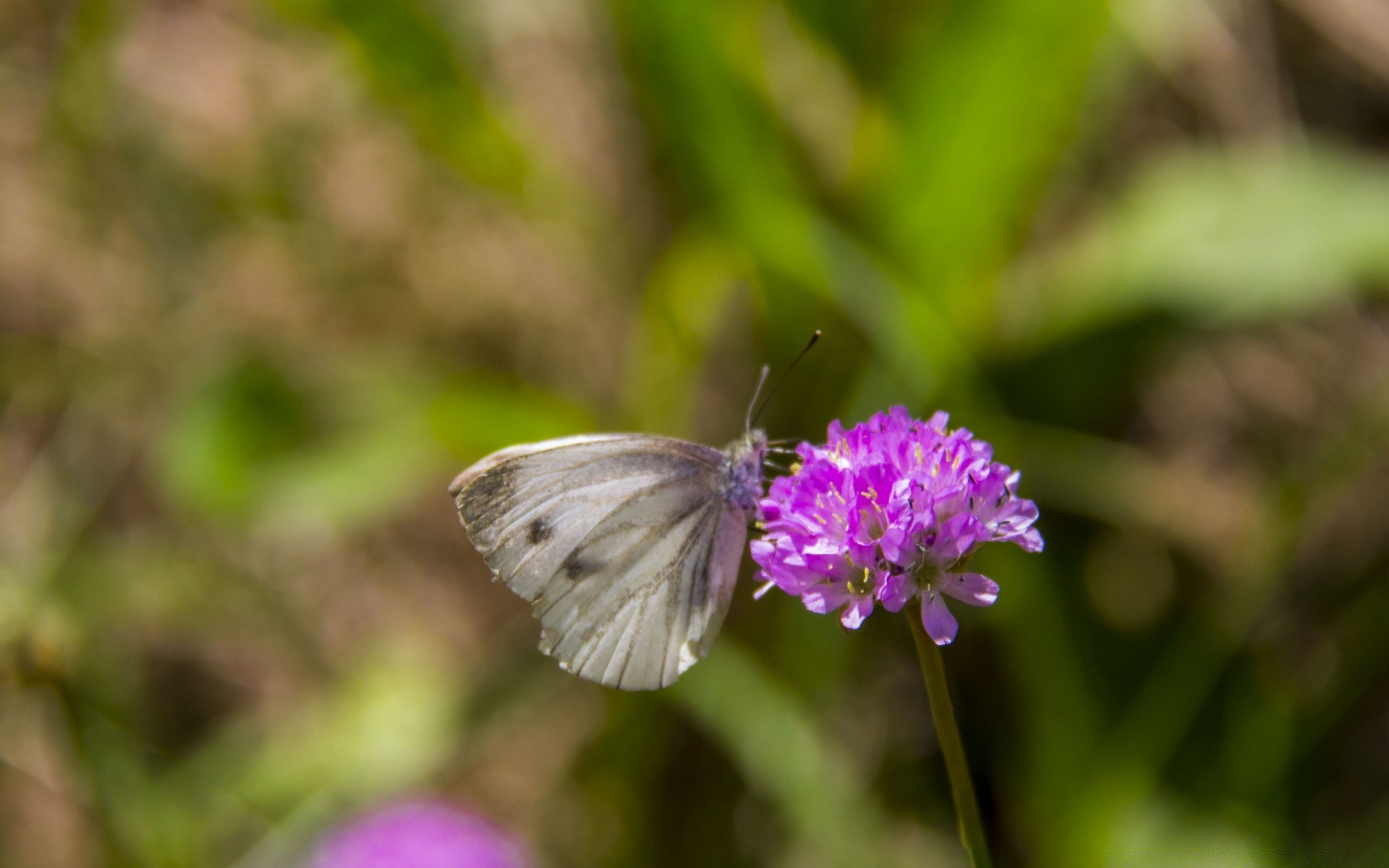 Ein Schmetterling sammelt Pollen von einer lila Blume