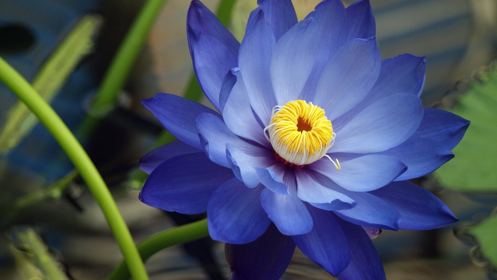 Lila Lotusblume auf dunklem Wasserhintergrund