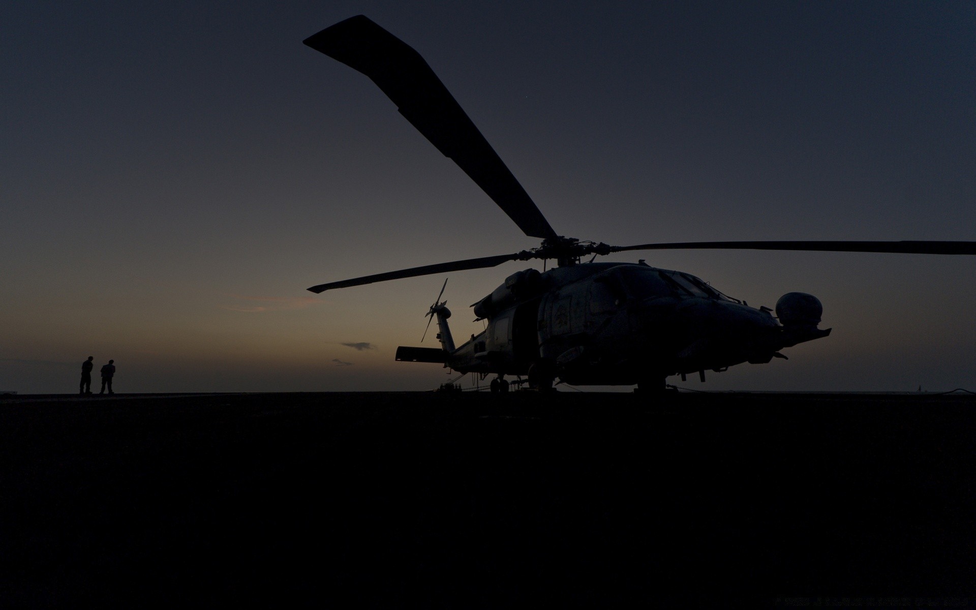 Schlafender Hubschrauber, Maschine auf dem Boden, Nachtlandschaft