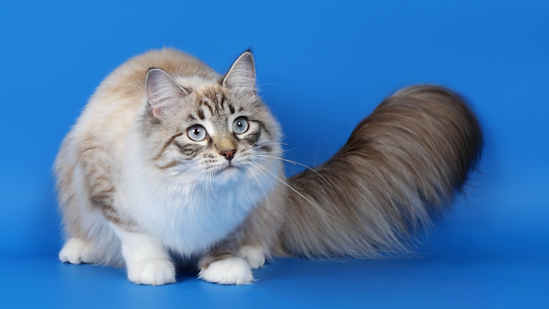 Eine Katze im roten Kopftuch sitzt auf einem Stuhl