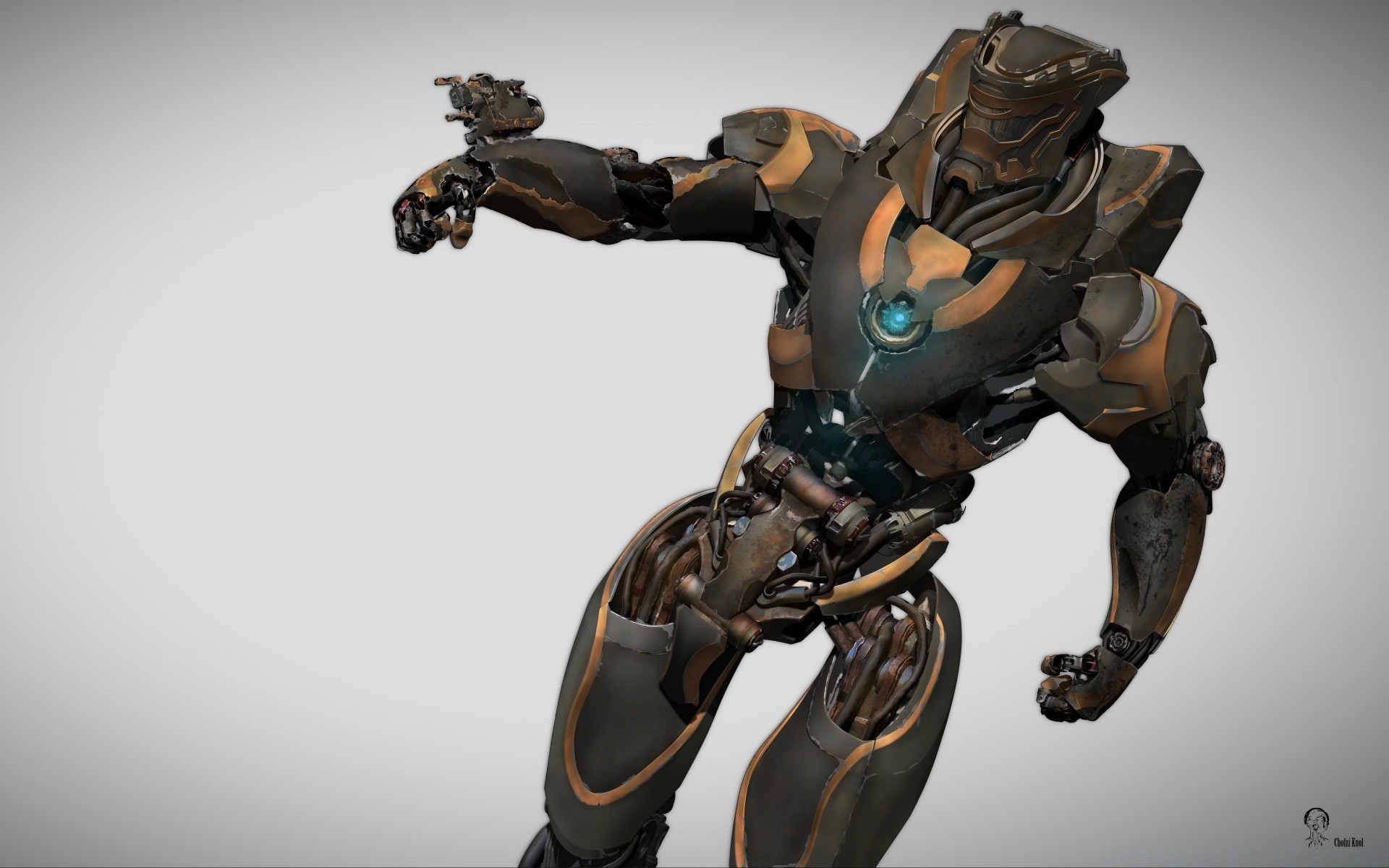 Roboter-Krieger in Rüstung und Waffen