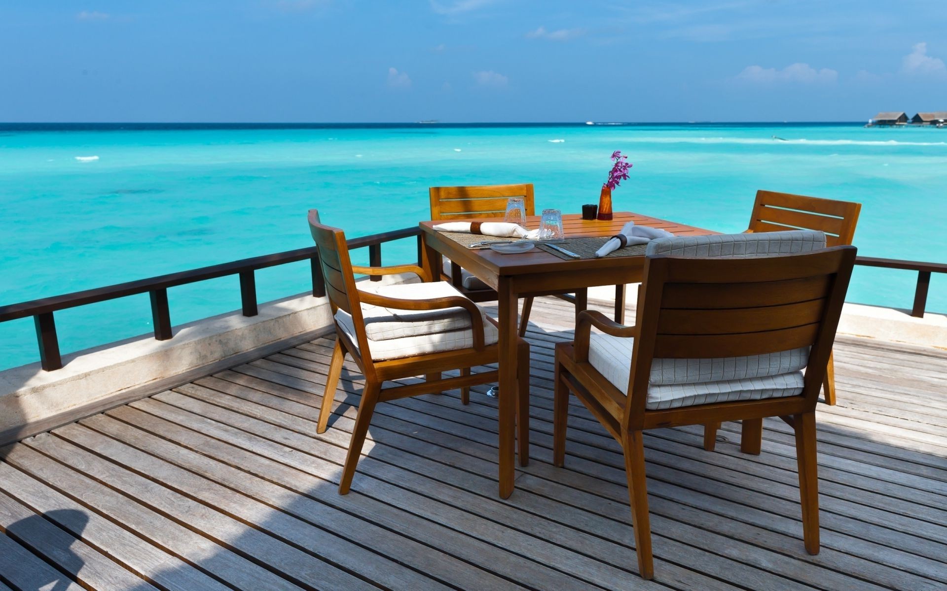 Vernada mit Esstisch am blauen Meer