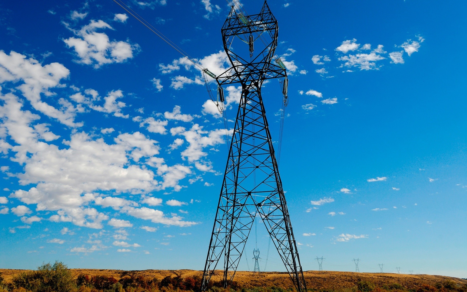 Stromleitungen vor dem Hintergrund der Sommerlandschaft