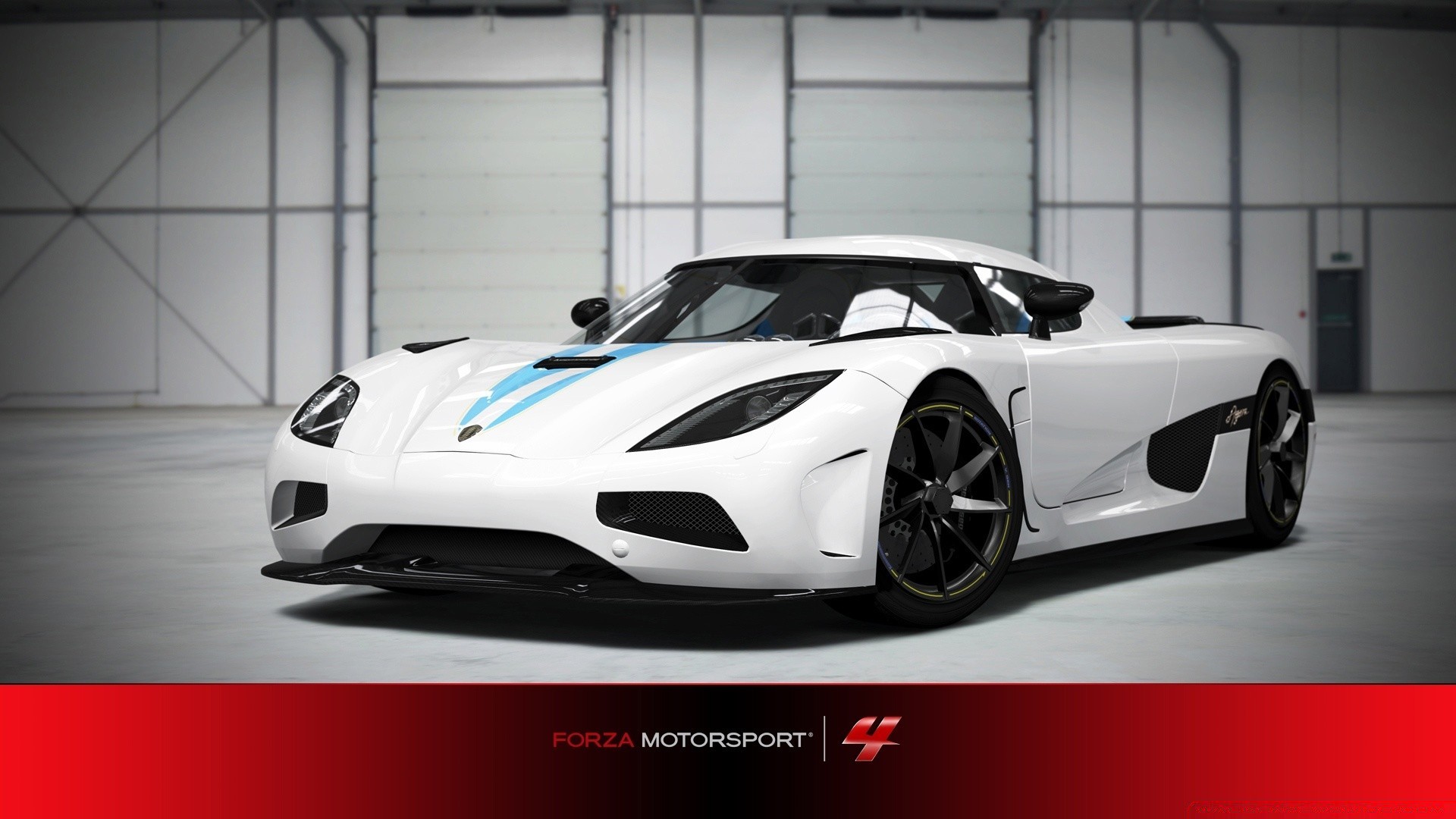 Blauer Rennwagen im Hangar
