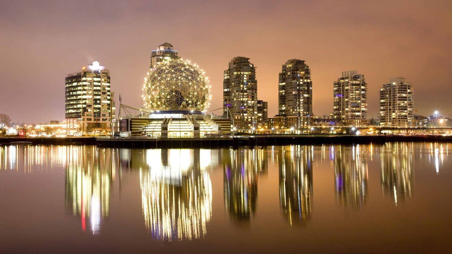 Eine große Stadt in der Nähe des Ozeans in Lichtern