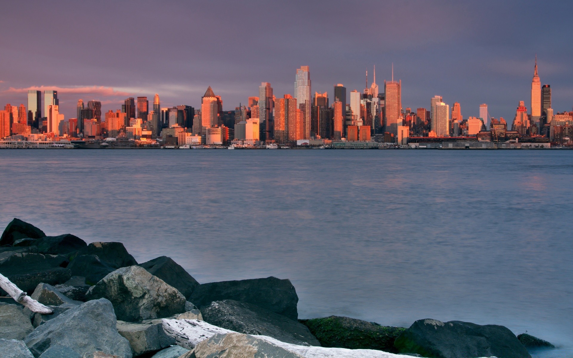 Eine große Stadt mit Wolkenkratzern voller Lichter