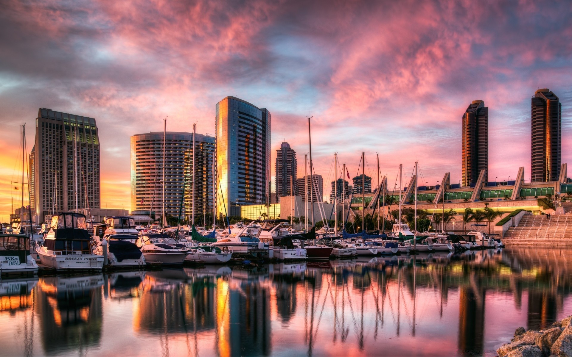 Stadt am Meer Wolkenkratzer Himmel Wasser
