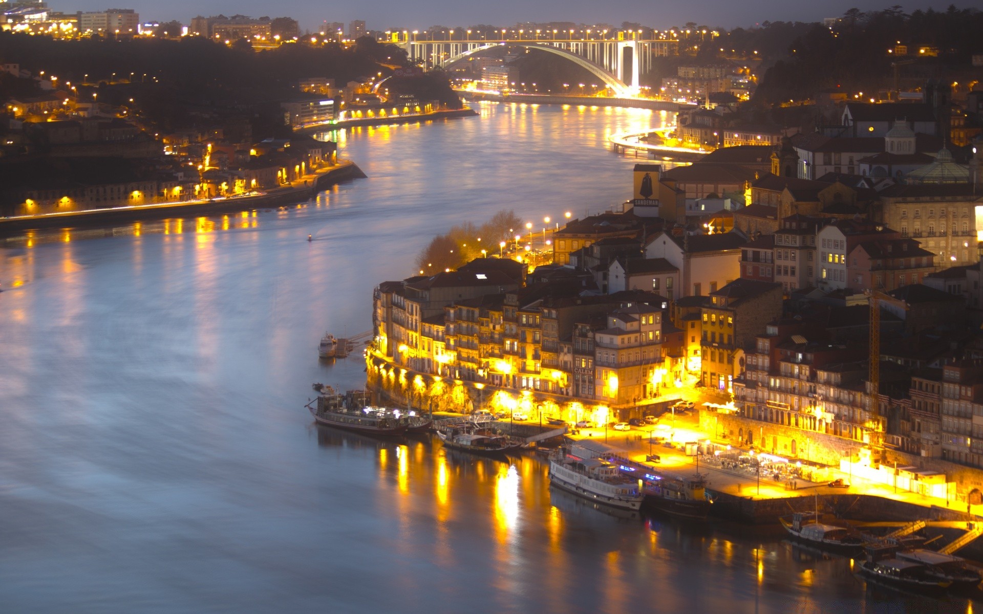 Nacht europäische Stadt beleuchtete Beleuchtung