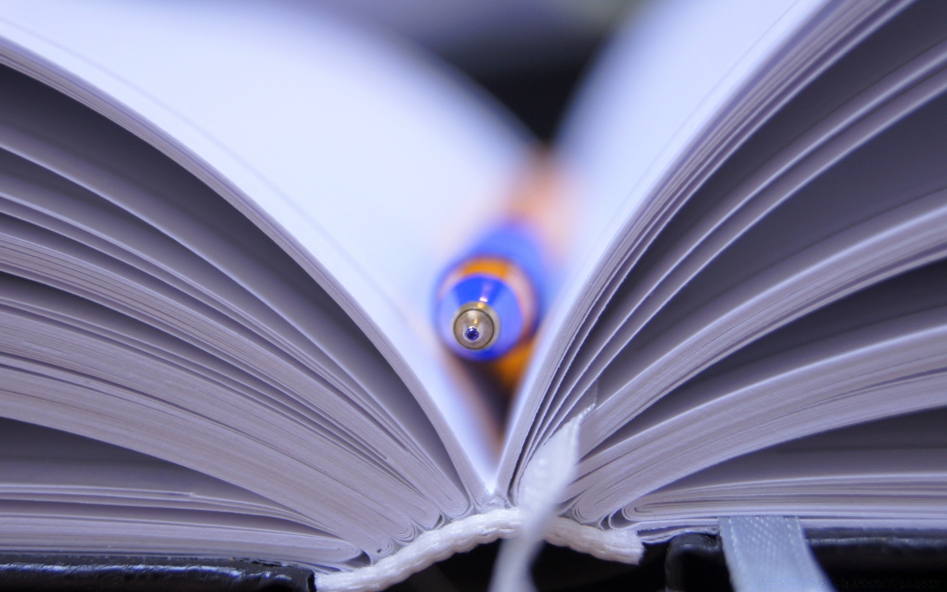 Makrobild der Seiten eines Literaturbuchs in einer Bibliothek