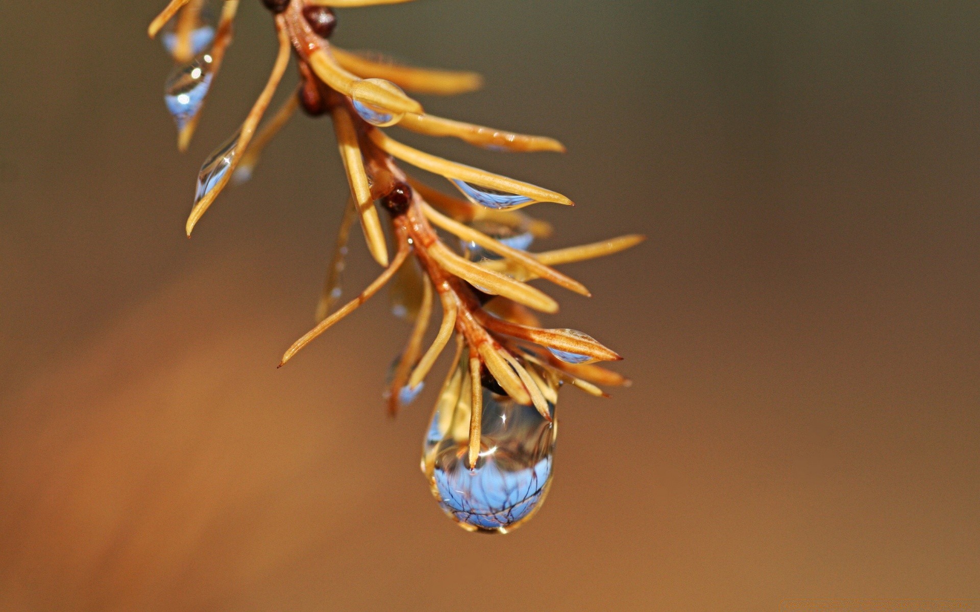 Auf der kiefer tröpfchen wasser mit einem interessanten farbtonAuf der Kiefer Tröpfchen Wasser mit einem interessanten Farbton