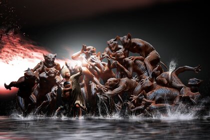 Festivalleistung mit bewegung, wettbewerben und wasser