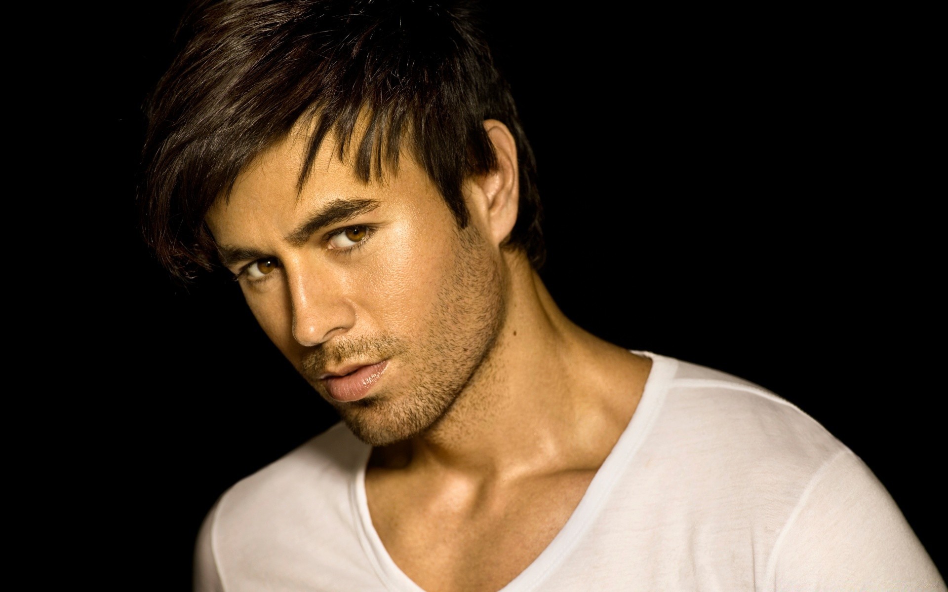 Mann im weißen T-Shirt auf schwarzem Hintergrund