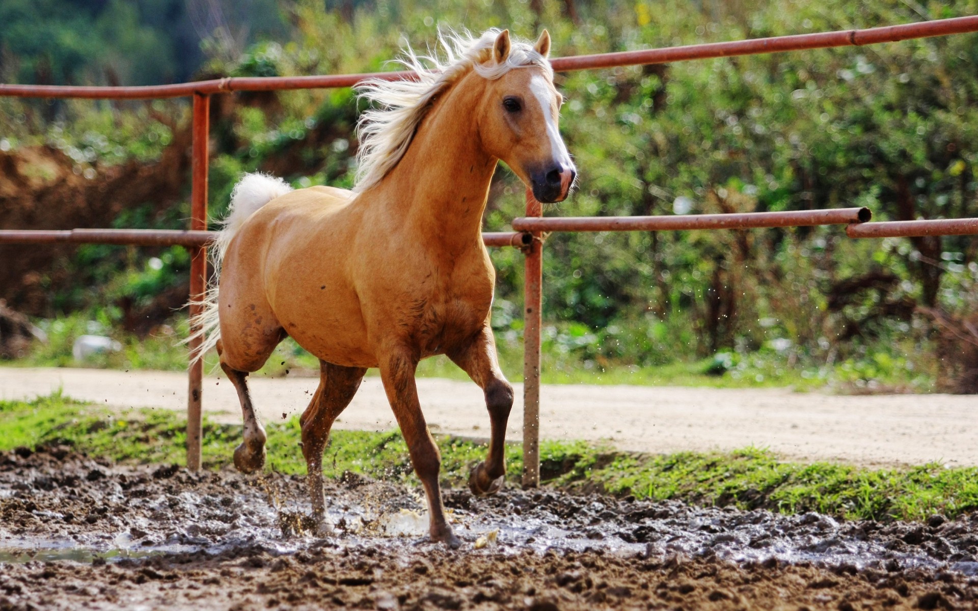 Ein anmutiges Pferd ging an das Ufer des Sees