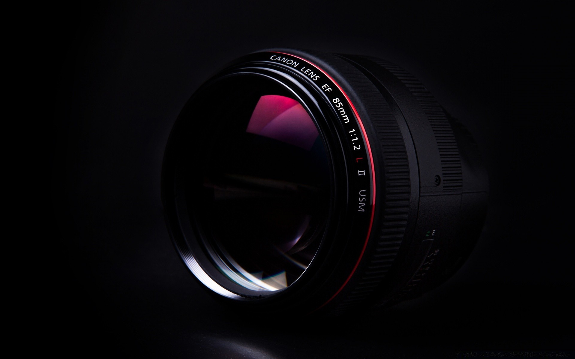 Mehrfarbiges Objektiv auf schwarzem Hintergrund
