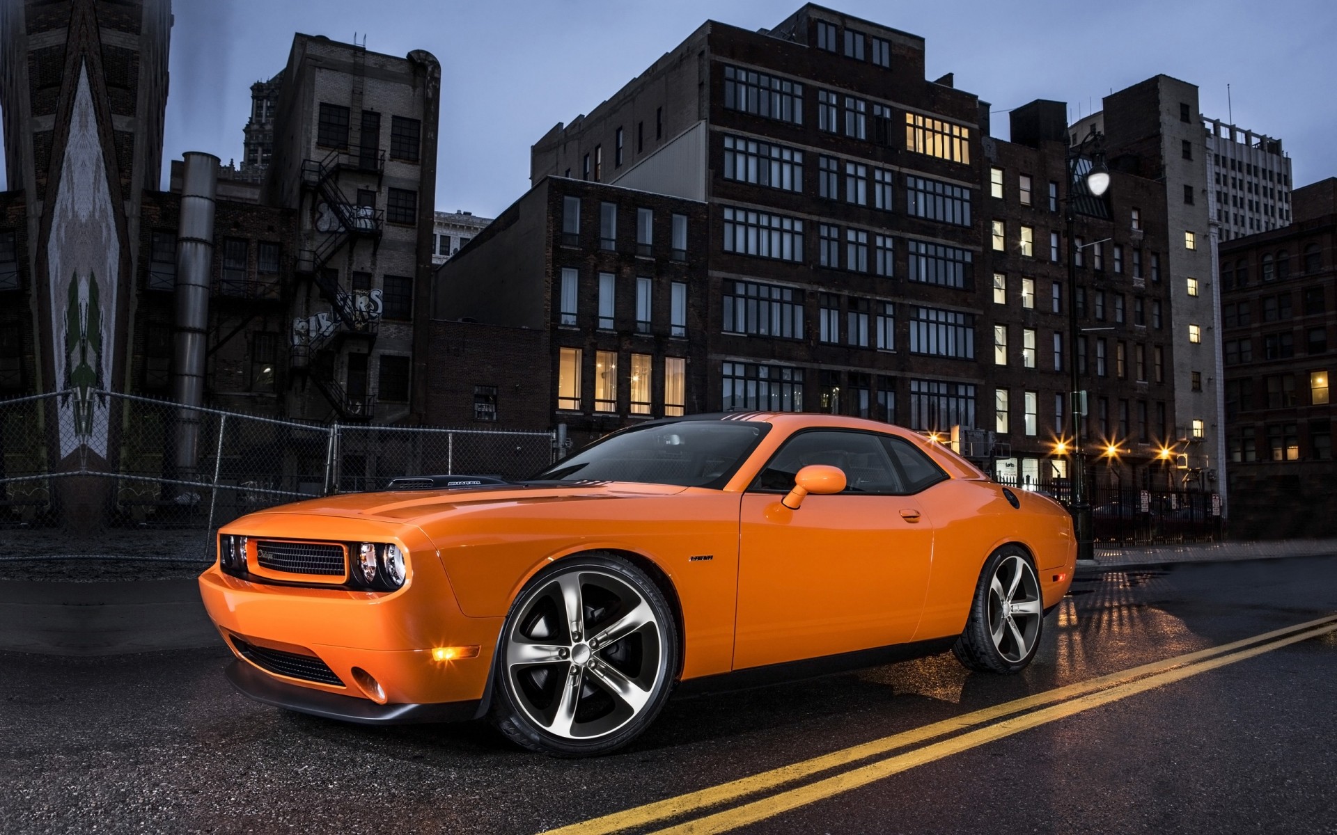 Orange Auto auf Nacht Stadt Hintergrund
