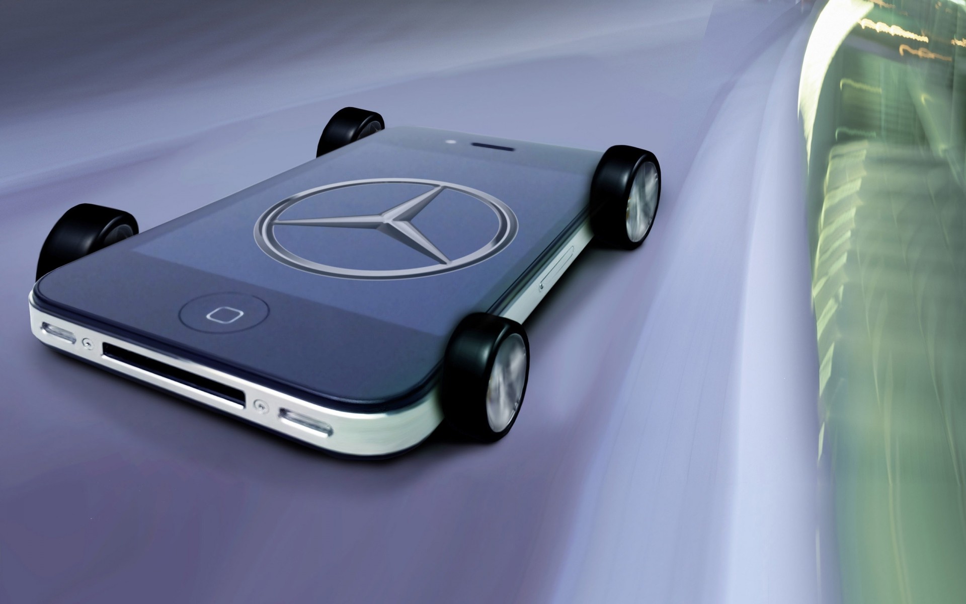 Kunstfoto eines Mercedes-Autos auf grauem Hintergrund