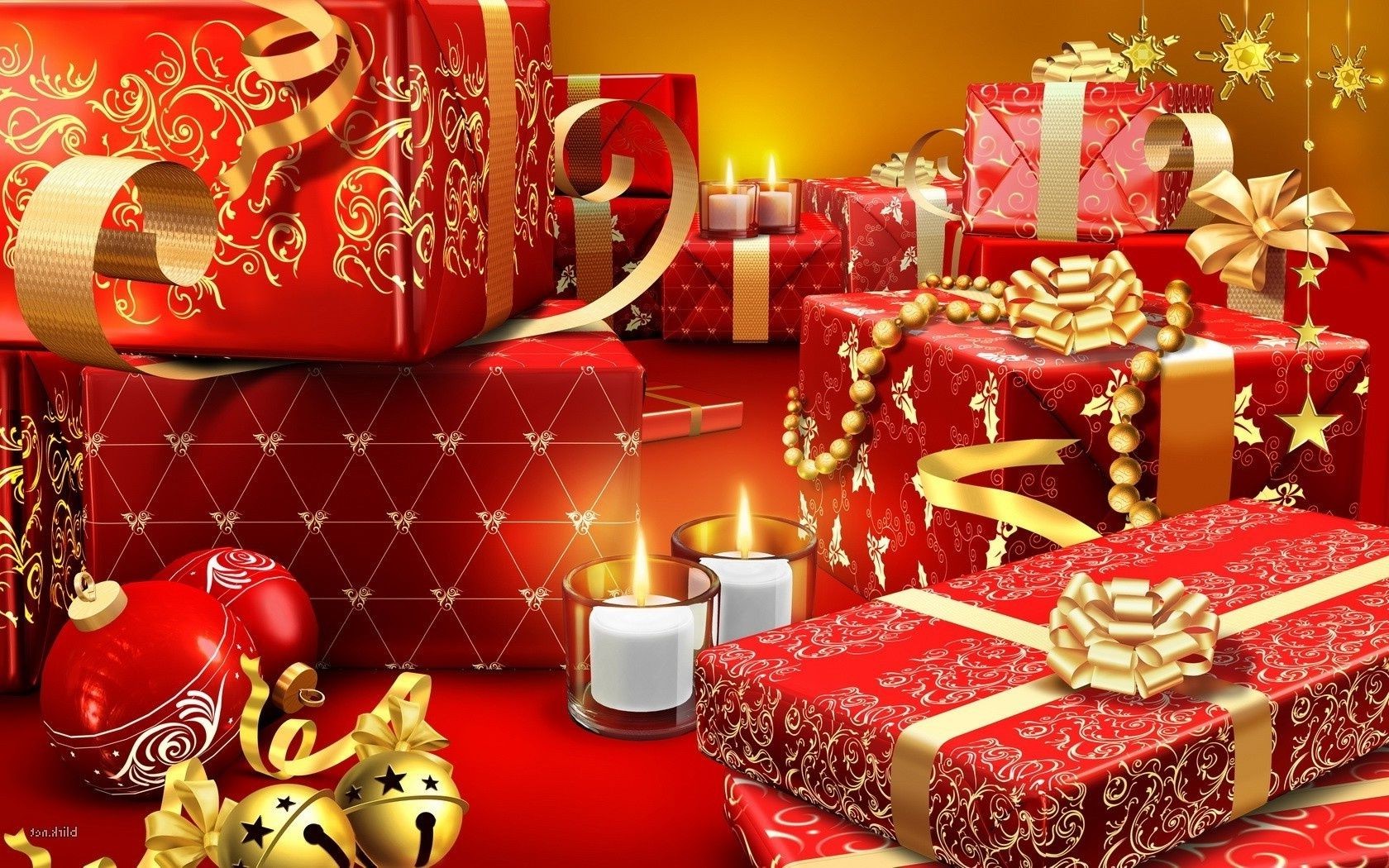 Weihnachtsinternier:Geschenke, Kerzen, Glocken