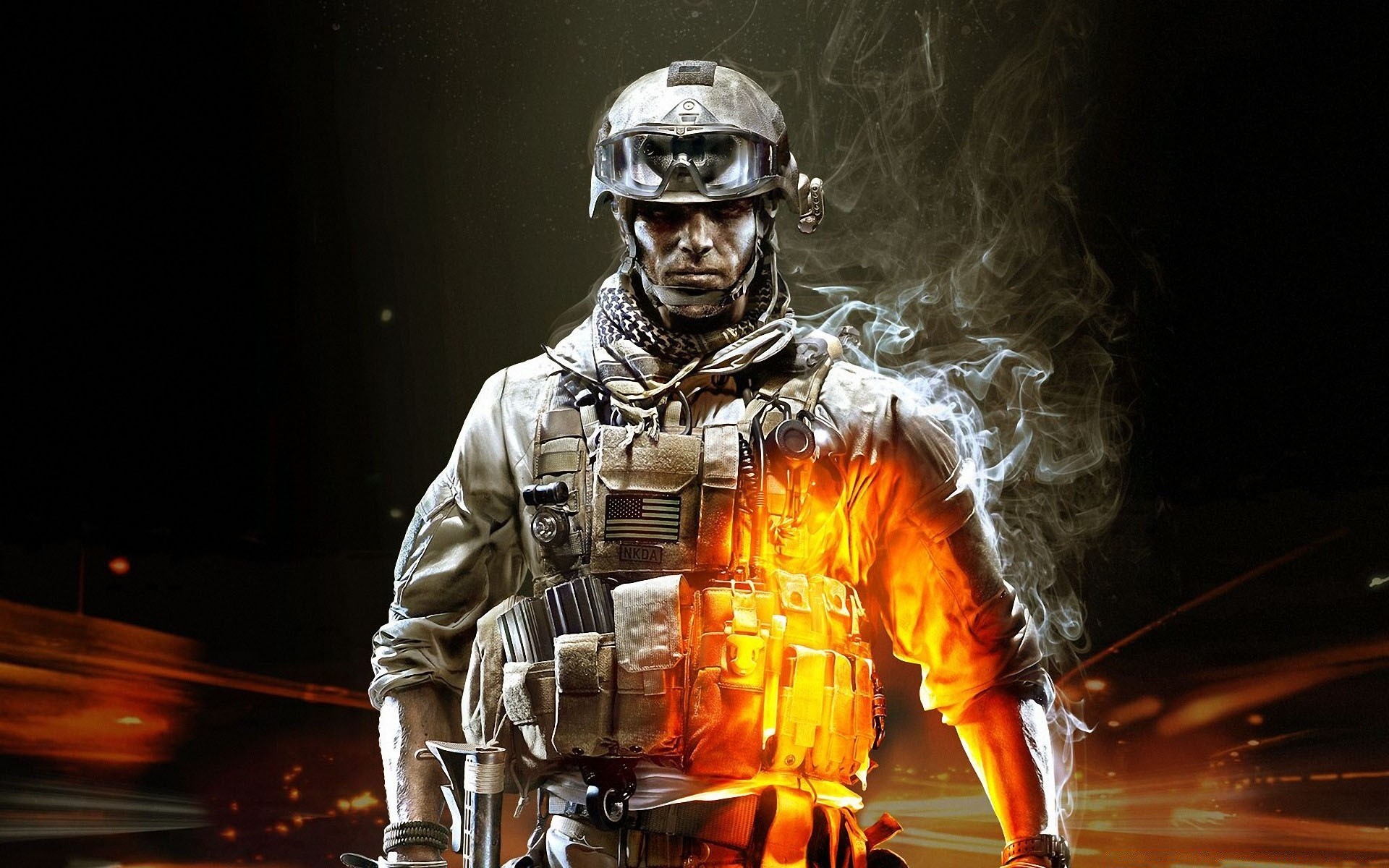 Militär auf dem hintergrund der lichter der stadt aus einem computerspielMilitär auf dem Hintergrund der Lichter der Stadt aus einem Computerspiel