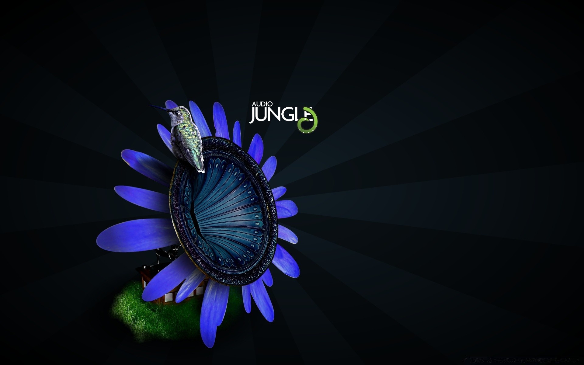 Ein grammophon in form einer blume, auf dem ein vogel sitztEin Grammophon in Form einer Blume, auf dem ein Vogel sitzt