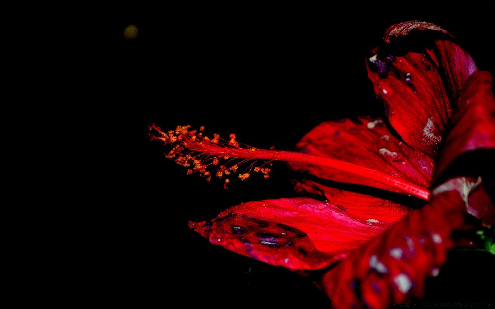Leuchtend scharlachrote blume auf schwarzem hintergrundLeuchtend scharlachrote Blume auf schwarzem Hintergrund